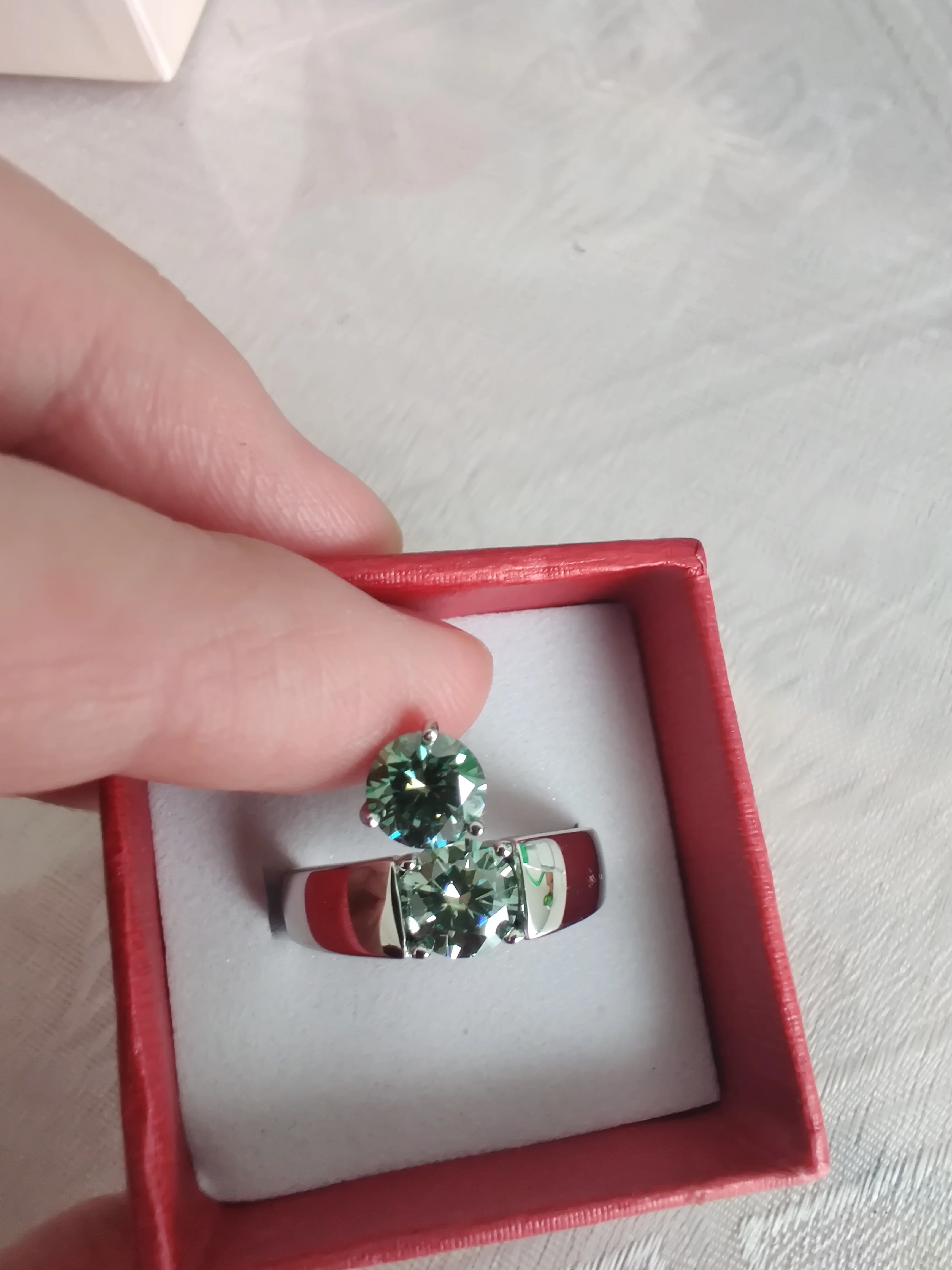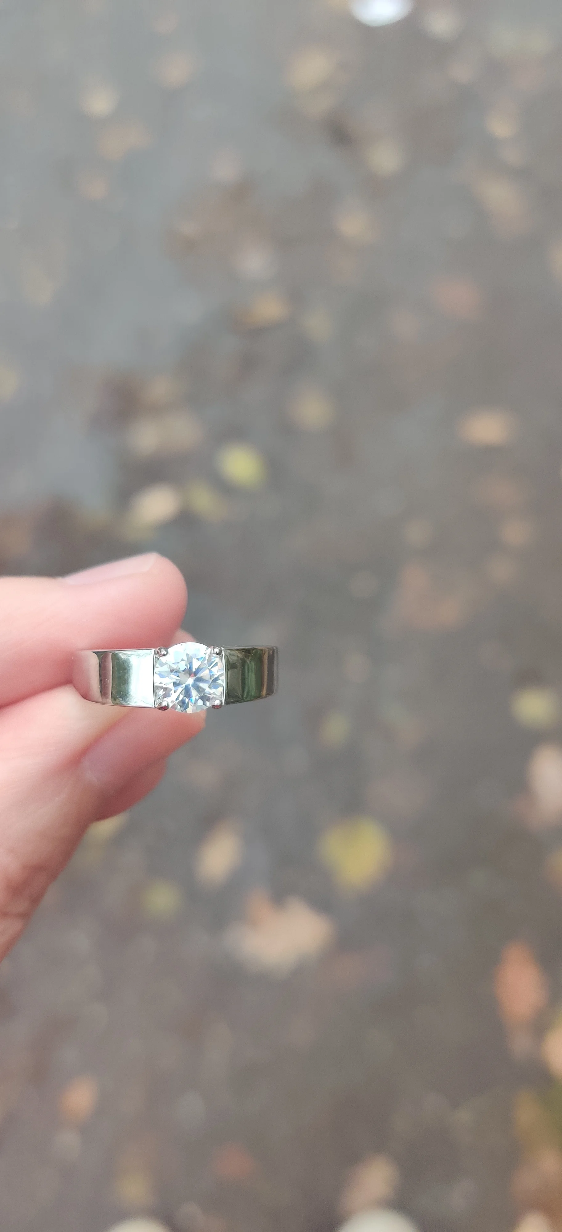 The moissanit is similar to those of diamonds in the internal structure and the value.The Moissanite is more shiny after wearing.VVS moissanite stones go through half of the wedding band for women.The stones shine as real diamonds. And only real moissanite can pass diamond test .